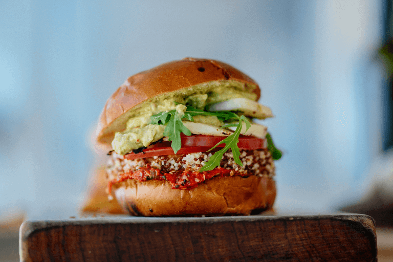 Black bean burger made by Escoffier Online Culinary Arts student Michael T.