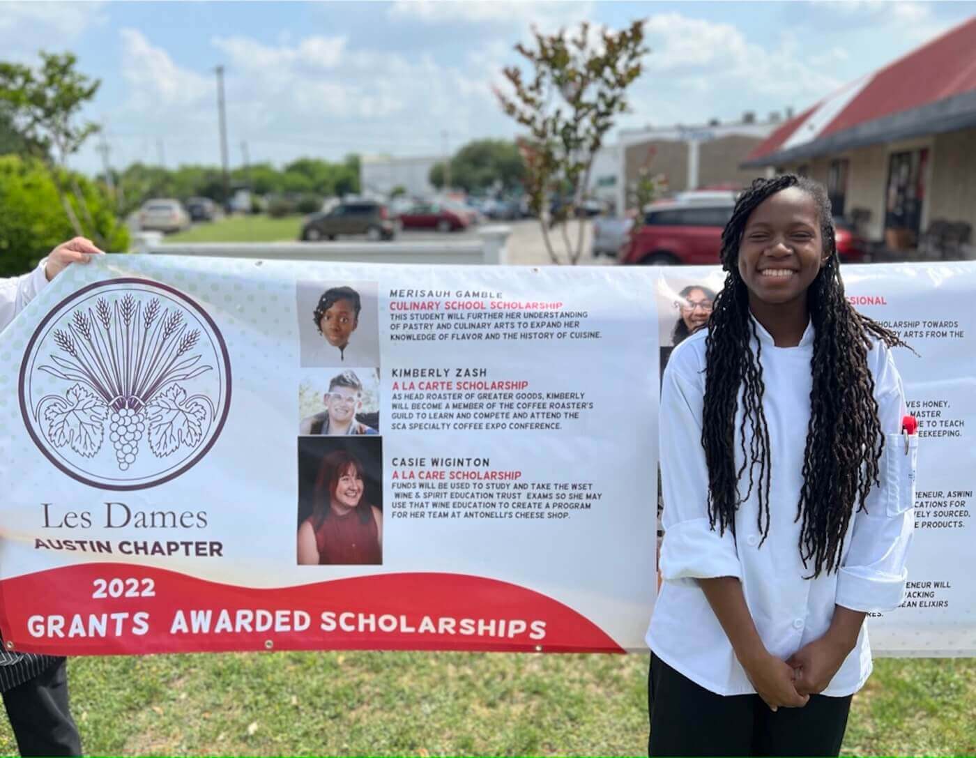 Another resource Merisauh didn’t sleep on? Applying for scholarships. When Chef Tammie mentioned the opportunity to apply for a scholarship from Les Dames d’Escoffier’s Austin Chapter, Merisauh jumped at the chance. She put in the work to create a compelling application and won a valuable scholarship that helped her to cover a portion of her education expenses. She also received a scholarship from the Escoffier Scholarship Foundation, which she secured by writing an essay about her experiences.