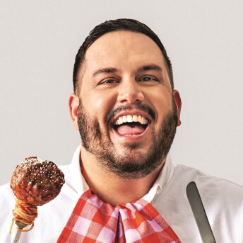 Dan Pelosi: Yeah, meatball. I mean, it just is, I self-identify as a meatball. It is my gender. I love it. You get your hands in it. You mix the meat. You form the balls. You cook them, and you let them simmer in the sauce. The flavor grows, and they taste better over time. I’ve got a couple different variations of meatballs. I’ve got a vegetarian meatball in the book. Everyone puts different things in them, and I love how controversial the fact that I put raisins in mine is. Everyone freaks out about it. I just think they’re such a good unifier. You can make a sandwich. You can have them for breakfast. You can throw them at someone. They’re just so fun. I love them, and I love that I call Bimpy up and he’s like, “I’m making a hundred meatballs.” It’s just ridiculous. Meatballs – the whole idea makes me happy.