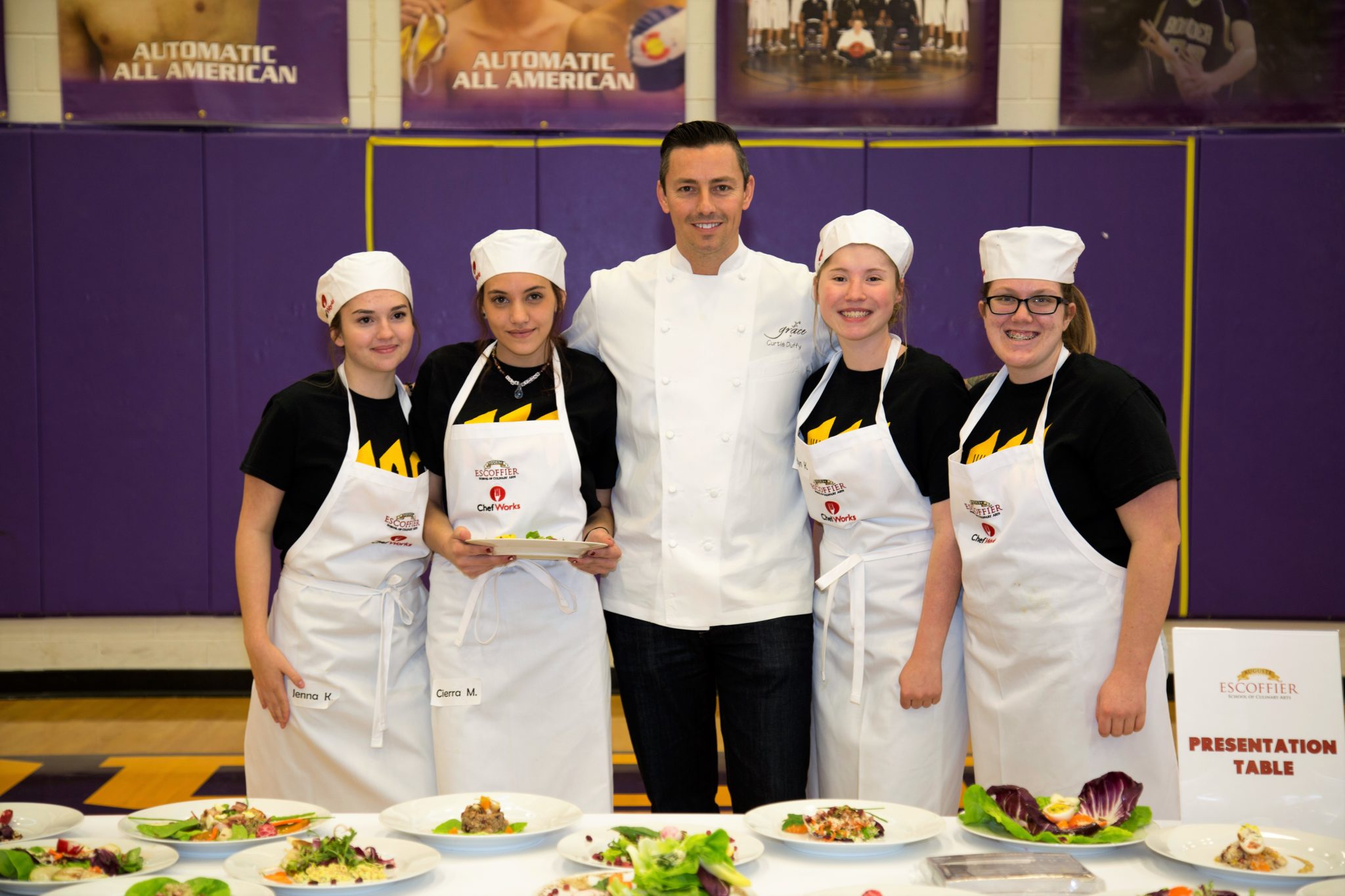 On Monday February 13, 2017, twenty teams from high schools in the Denver area participated in the Auguste Escoffier School of the Culinary Arts’ Young Escoffier Competition. The event was the second of its kind for the school and the first time Curtis Duffy, the chef and owner of the 3 Michelin-starred restaurant Grace in Chicago, was a featured judge. Of the 20 competing teams, the three winners were: Rocky Mountain High School (3rd place), Ponderosa High School (2nd place) and Elizabeth High School (1st place).